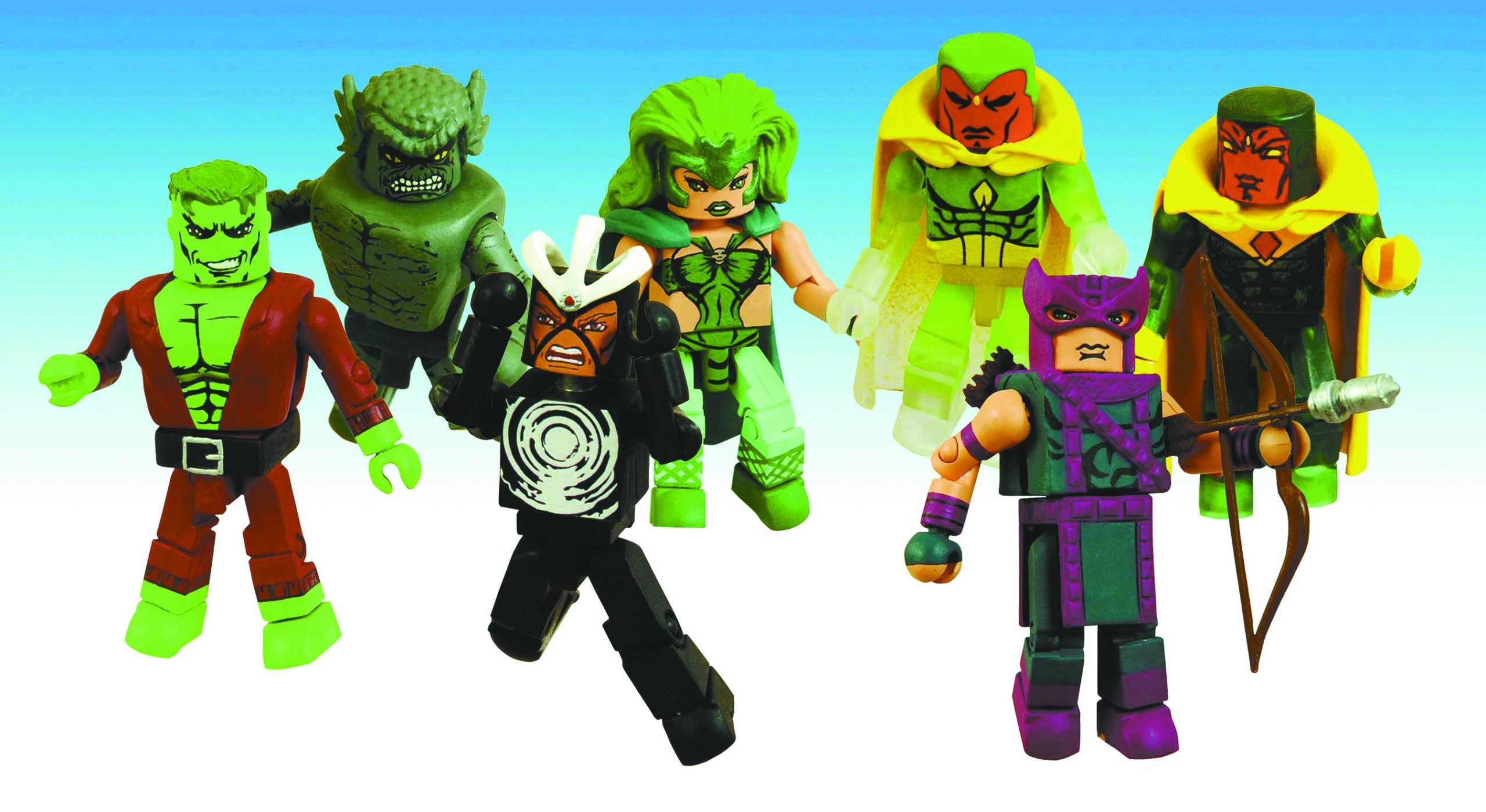 A Diamond Select Release! An Art Asylum Design & Sculpt! You asked for it! Featuring a lineup that promises to send fans into the stratosphere, the unstoppable Marvel Minimates line continues with this landmark twentieth series. Each two-pack features a knock-out combination of characters – including Smart Hulk & Abomination, Havok & Polaris, Hawkeye & Vision and the limited Vision 2.0 variant Minimate! These two-inch champions pack quite the punch and promise to defend your collection from supervillains, aliens and demons alike!